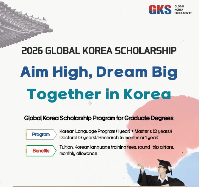 The Global Korea Scholarship (GKS) is a prestigious, fully funded scholarship program offered by the Korean government to support outstanding international students who wish to pursue Master’s, Doctoral, or Research degrees in South Korea.